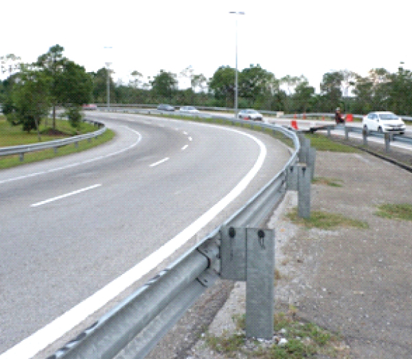 1 “W” metal beam made of galvanized sheet & fixed with ISMC 150, 5 mm thick. Made of Vertical post of steel pipe having length 2.2 Mt. in height, and 4 No. horizontal member for fixing & positioning the roller barrier.
